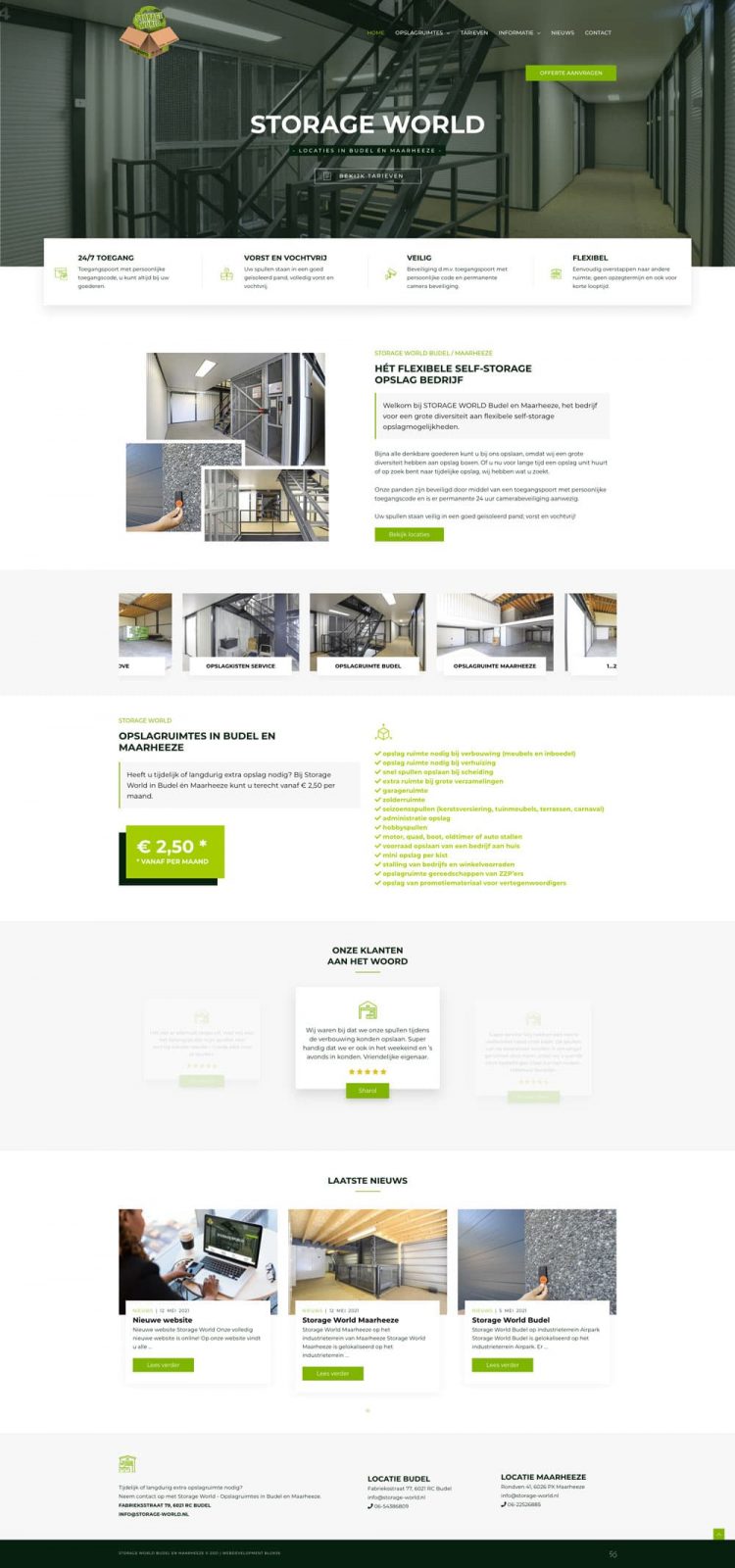 Ontwikkeling van een nieuwe website, fotografie en virtuele tour voor Storage World Budel en Maarheeze, het bedrijf voor een grote diversiteit aan flexibele self-storage opslagmogelijkheden.